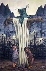 Neşet Günal’ın resimlerine bakmak yürek ister, cesaret ister. O gözlerle, o ellerle, o yüzlerle bir an için bile gözgöze gelmek ürkütür insanı. Siz, biz “yürek dayanmaz” diyerek bakışlarımızı kaçırırken Neşet Günal’ın o resimleri yaparken, geçmişte yaşadığı anıları tekrar depreşirkenki hali nicedir, bilir misiniz? Hemen hepsi tanıdık yüzler değil midir onun için: ‘Mehmet’in Oğlu', ‘Kolsuz Durmuş’un Kadını, ‘Kör Hasan’ın Oğlu' ve daha niceleri... Zira, ‘‘Benim kişiliğimi oluşturan resimlerimde anlatılan, içinde yaşadığım toplumsal ve doğal ortamın insanları, bana en yakın olan toprak adamları, yaşamlarını her yönüyle tanıdığım insanlar’’ sözü aynı havayı soluduğunun, aynı toprağı sürüdüğünün, aynı dikene bastığının, aynı güneşin yaktığının ve aynı korkuları/korkulukları paylaştığının resmi değil midir? Zaten, yine “Resim benim için bir oyun değil, azaplı bir süreçtir’’ deyimiyle tuvale acıları kazıdığını belirtmez mi? Hepsi olmamakla birlikte toplumsal gerçekçi sanatçılar “Ya dışındasındır çemberin ya da içinde yer alacaksın” seçimini çemberin, hayatın, gerçeklerin içinde yer almaktan yana kullanırken Neşet Günal bir adım daha öne çıkarak, sırasında anlattığı, resmettiği figürlerin yerine koyar kendisini. Bir andız fidanı gibi Dilerseniz, gelin şimdi, o yoksul, o kıraç Anadolu köylerinde, toprak damların önünde yürek sızlatan yalınayak Neşet Günal çocuklarına bir göz atalım. 1983 tarihli 138X83 cm boyutundaki ‘Mehmet’in Oğlu' adlı resim yürek parçalayan dramatik bir resimdir. Sol gözü kör olan bu bebenin başı sola doğru yaslanırken koşut olarak omuzu sağa düşmektedir. Belli belirsiz kamburu boynunu öne düşürmüştür. Ayakları ve elleri ‘hazırol’da bekler gibi vücuduna bitişiktir. Saçı dahi asimetrik biçimde sanki tek hamle ile kırpılmış gibidir; önde tepede uzun, yanlarda kısa, ama sarkıktır. Giydiği beyaz urbanın üzerine tek düğme ile iliklenmiş ceketteki ve yalınayak yere bastığı gölge topraktaki koyu lekeler saç hizasında resmi yatay olarak bölen koyu renkteki toprak damlı evlerle dengelenmiştir. Kaşlardaki kırıklık, alındaki kırışıklık, dudaklardaki suskunluk çaresizliği, yoksulluğu, kabullenişi ortaya koymakta, bakanın yüreğini dağlamaktadır. Neşet Günal’ın resimlerindeki çocuklar bir andız fidanı gibi orta yerde toprağın üstünde ‘anadan üryan’ büyüyen çocuklardır. Sanatçının ‘Duvardibi’, ‘Kapı önü’, ‘Sorun – Sorum’ gibi dizi resimlerinden biri de ‘Korkuluk’lardır. Bu korkuluklar “bostan korkuluk”larından öte bir anlamı barındırırlar resimde. ‘Antropomorfik’* görüntünün ötesine geçerek sanki gerçekten yaşayan hayaletlerin ruhunu, hatta ve hatta suretini barındıran, bir gerilim ve korku yayan, terkedilmiş, ıssız bir mekan hissi uyandıran korkuluklardır bunlar. Bu yaratıda birbirine dik çatılmış iki değnekten hareketle sanatçının kostüm tasarımında ulaştığı çizgi had safhadadır. Çocuklar hep de korkulukların önünde kümelenmişler, kimi zaman da korkuluklara tutunmuşlardır. Sanki yağmurdan kaçarken doluya tutulmuşlardır. Bir çelişki gibi görünse de ne kadar yalnız, ne kadar yardıma muhtaç olduklarını sergilemek açısından oldukça vurucu bir metottur bu. Daha da ötesi insan boyundaki sıradan gibi görülen bir korkuluğu tek başına resimlemek cesaret işidir. Çitler üzerine asılmış hayvan kurukafaları, ‘duvardibi’ resimlerinde duvar yapımında sıralanmış taşların oylumlarının büründüğü yaratıkları çağrıştıran gerçeküstü görüntüler, 1964 tarihli “Sorun” resminde salıncağa yatırılmış bebeğin üzerinde gölgelik yaratmak kaygısıyla çomaklardan ve örtülerden oluşan cibinliğin çağrıştırdığı çiroz bir öküz görünümlü tüm bu fantazist öğeler konunun anlatımına, izleyiciye ulaştırılacak mesajın yoğunluğuna katkı sunmak için titizlikle seçilmişlerdir. “Eller, eller, eller...” “Eller, eller, eller...” Sıkılmış yumruk olmuş, bilekte düğümlenmiş, öfke dolmuş koca koca eller. Mengene haline dönüşmüş elleri bütün çıplaklığıyla görebiliyorsunuz. İkinci baştakinin sağ kolu yok. Beşi de suskun, beşi de küskün, sırtını dönmüş size ‘Duvardibi’nde (‘Duvardibi-IV resmi; 210x139 cm, 1975). Yalınayak toprağa basan koca koca ayaklar üzerinde yükselen bu ‘beşi bir yerde’ toprak adamı sanki bir labirentin içerisine hapsedilmiş maküs talihlerine inat birer anıt gibi dikilmiş karşıdaki beş viran kapısız ve dahi penceresiz dama, gerçekte daha uzaklara bakmakta. Resimlerimin bir ucundan bir ucuna bir hikâye, bir dram söz konusudur 1950’lerin ortasından itibaren Neşet Günal’ın resimleri monokrom denilebilecek derecede renkten yoksun olmasına karşın ‘bunca güçlü anlatım, bunca çığlık nasıl mümkün olabiliyor’ diye soruyorum kendime. Ekspresyonist ressamlardan Munch’ın “çığlık”ını gözümün önünde canlandırıyorum. Şiddet, gerilim çağrıştıran bu renklerin hiçbirisi yok Günal’da. Sanırım cevabı verecek anahtar kelime “tiyatro” ve teatral kurgu olsa gerek. Nedir tiyatronun gücü? “Keşanlı Ali Destanı”nı izlediğim o çocukluk günlerime dönüyorum: O ne performanstı, o ne biçim bir oyunculuktu, o nasıl bir sahne dekoruydu, nasıl bir kıyafet şöleniydi o? Gerçekte öyle bir destan yaşanmış mıydı, yazılmış mıydı; bilmiyorum! Ama bildiğim şu ki, o gün izlediğim ‘oyun’ gerçeğin ta kendisiydi. Toplumsal gerçekçilik akımına bağlı gibi görünse de Neşet Usta anlatacağı konuyu tıpkı sahneye konulan bir oyun gibi tasarlıyor. Önce doğru figürlere yer veriyor. Tuvaldeki sahne