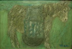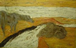 Orhan Peker bir sergisinden bahsederken "Ne yazık ki bu köpekle oynayan